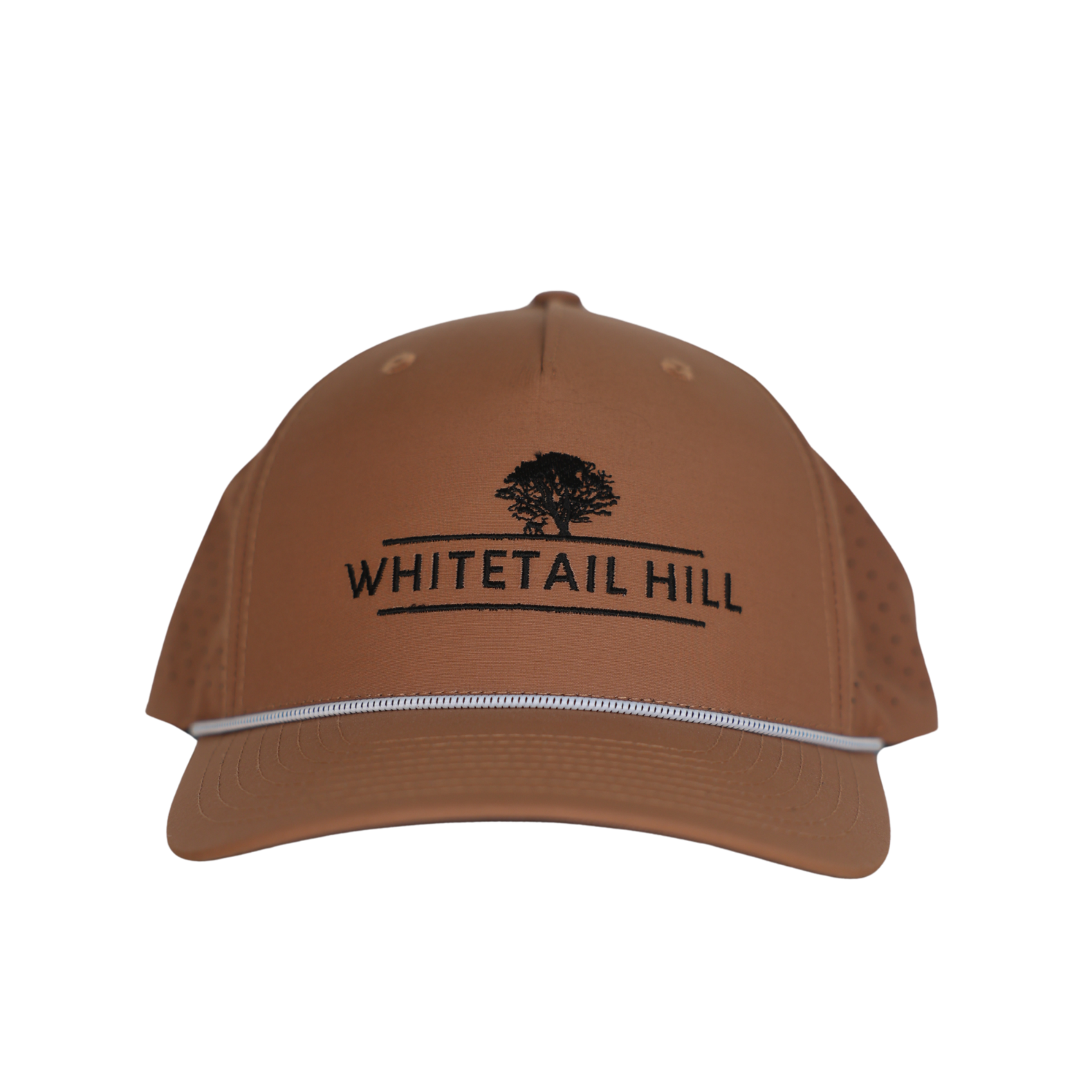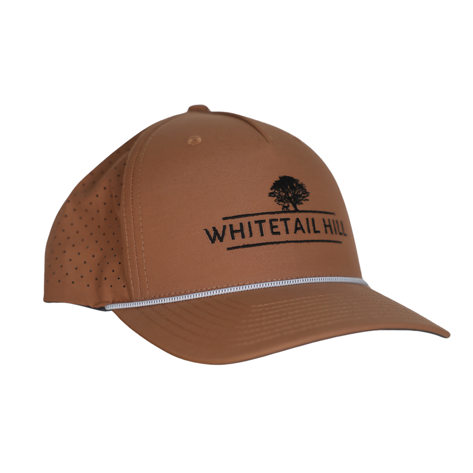 This Richardson 355 hat is a sharp and comfortable way to show your Whitetail Hill pride. Featuring our embroidered logo on the front and a classic rope accent across the bill, this design offers a structured fit with a lightweight, breathable build that holds its shape well. The adjustable snapback closure provides a comfortable fit for any head size, and the brown color makes it easy to pair with anything. Order yours today!